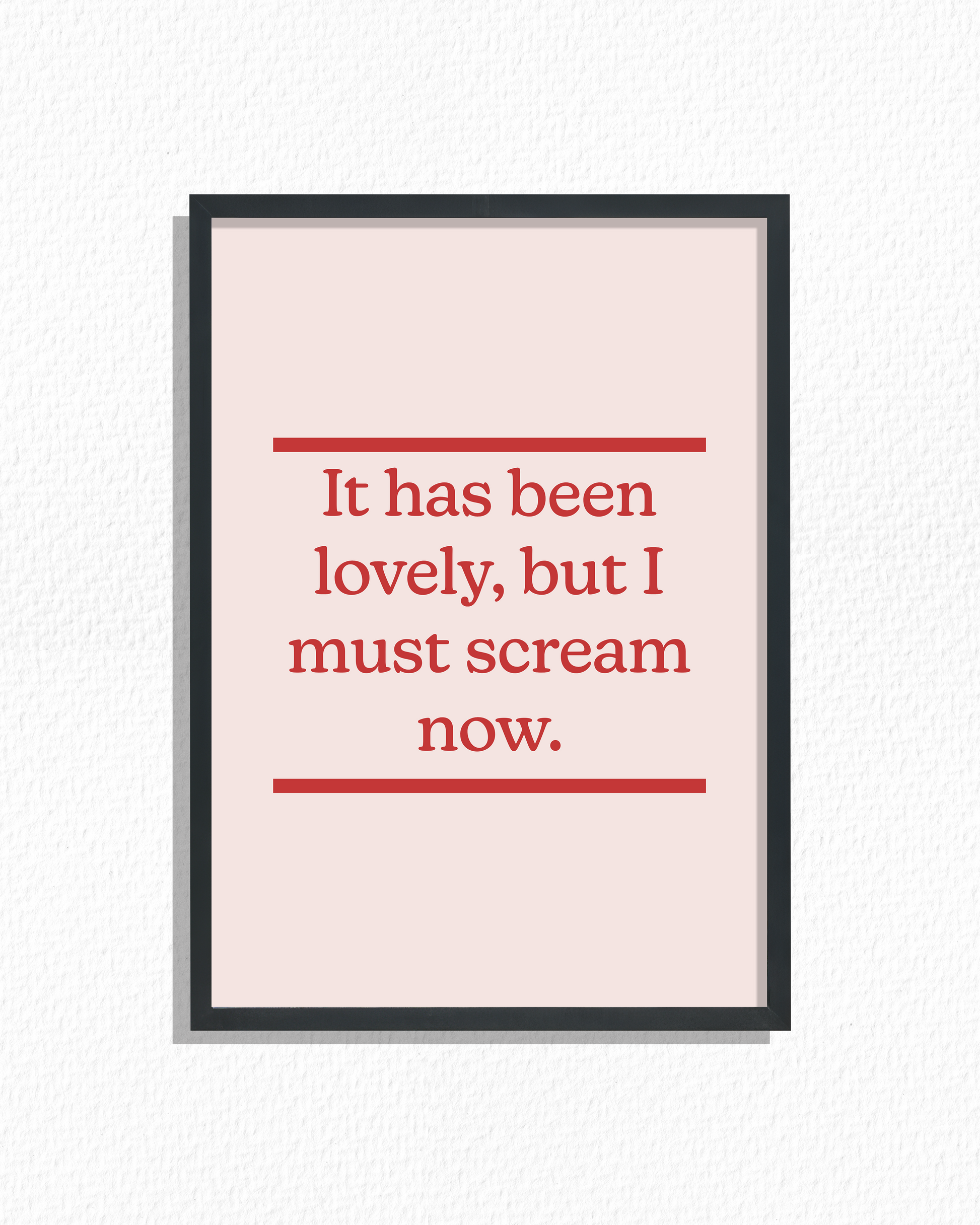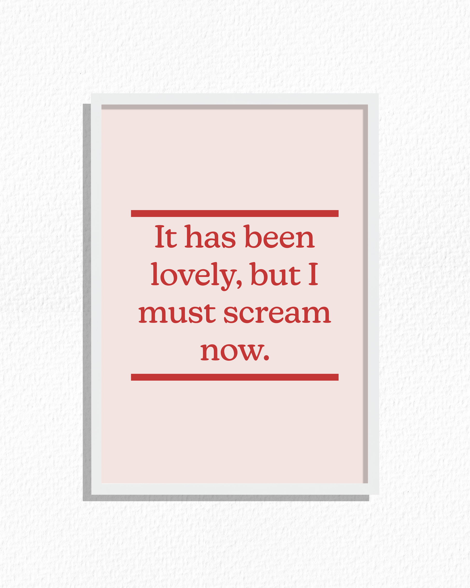 "It has been lovely, but I must scream now"
